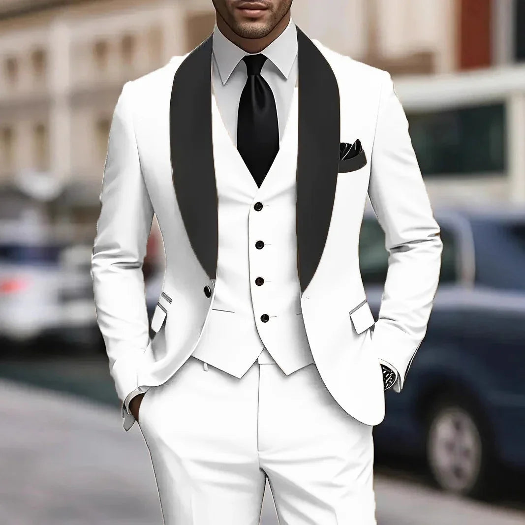 Mens Business-Casual Three-Piece Suit Korean-Style Slim Fit